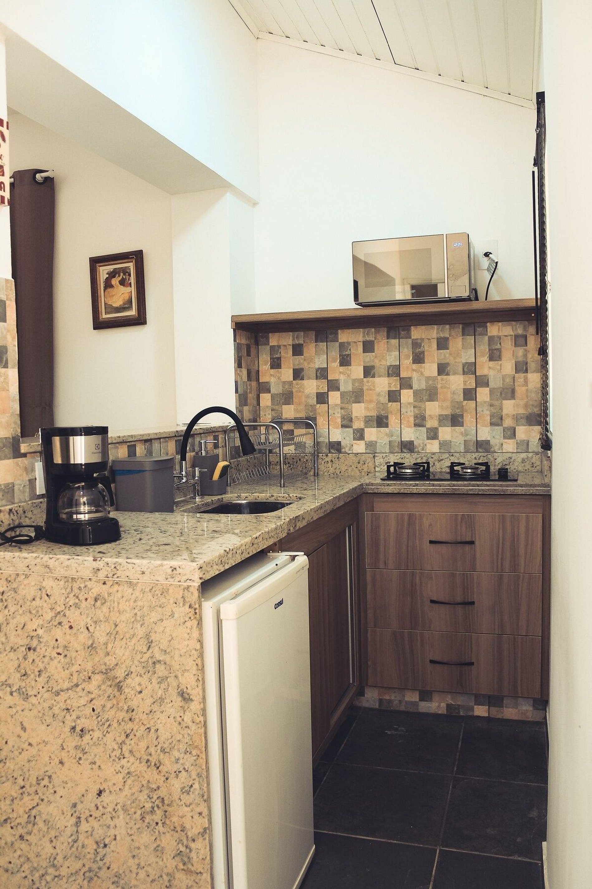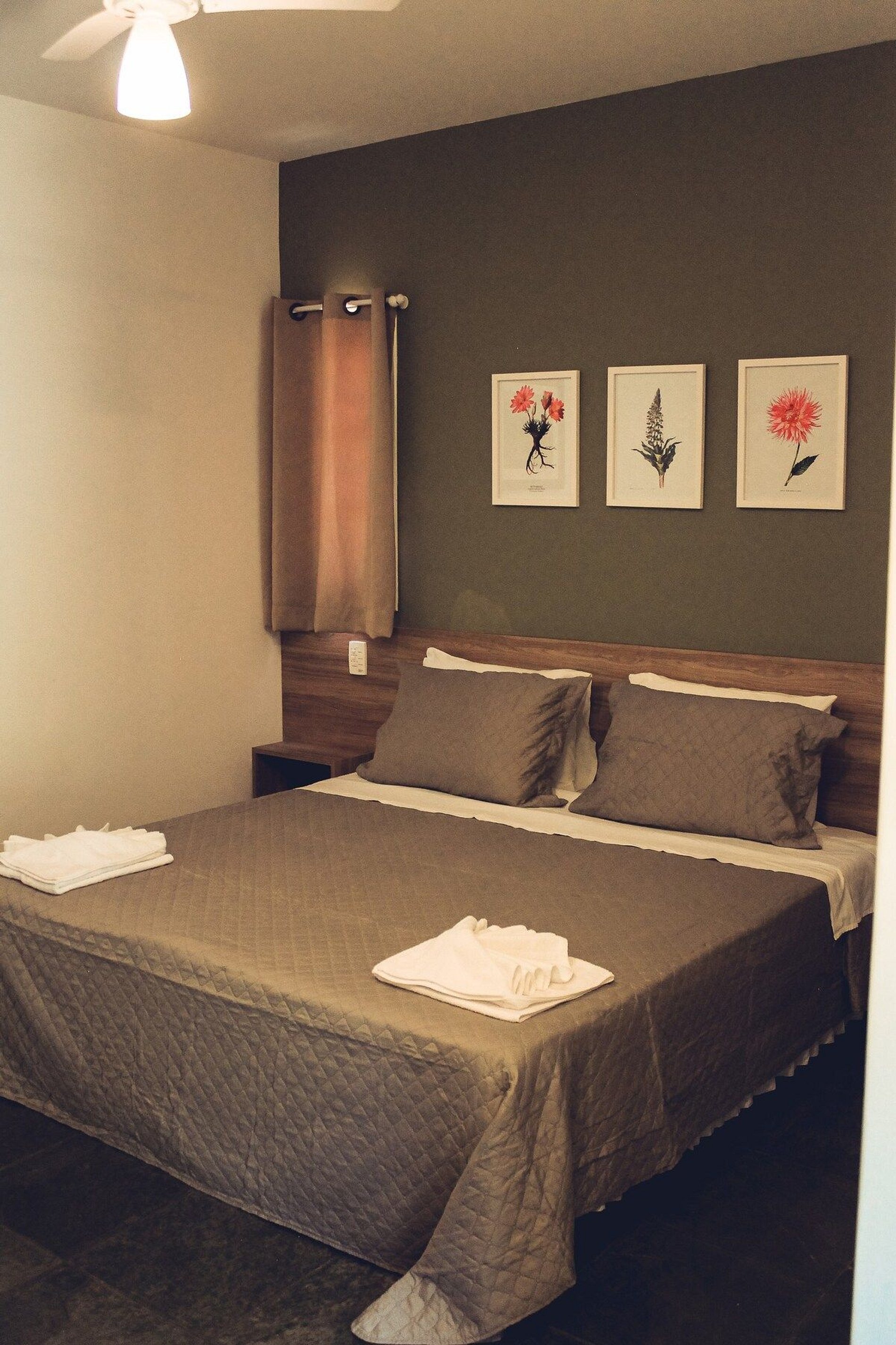 Excelente estrutura de hospedagem, com suítes confortáveis e bem equipadas, espaços para descanso e lazer, além de sala de Coworking com sinal estável de internet, tudo isso em meio ao verde exuberante da natureza.
