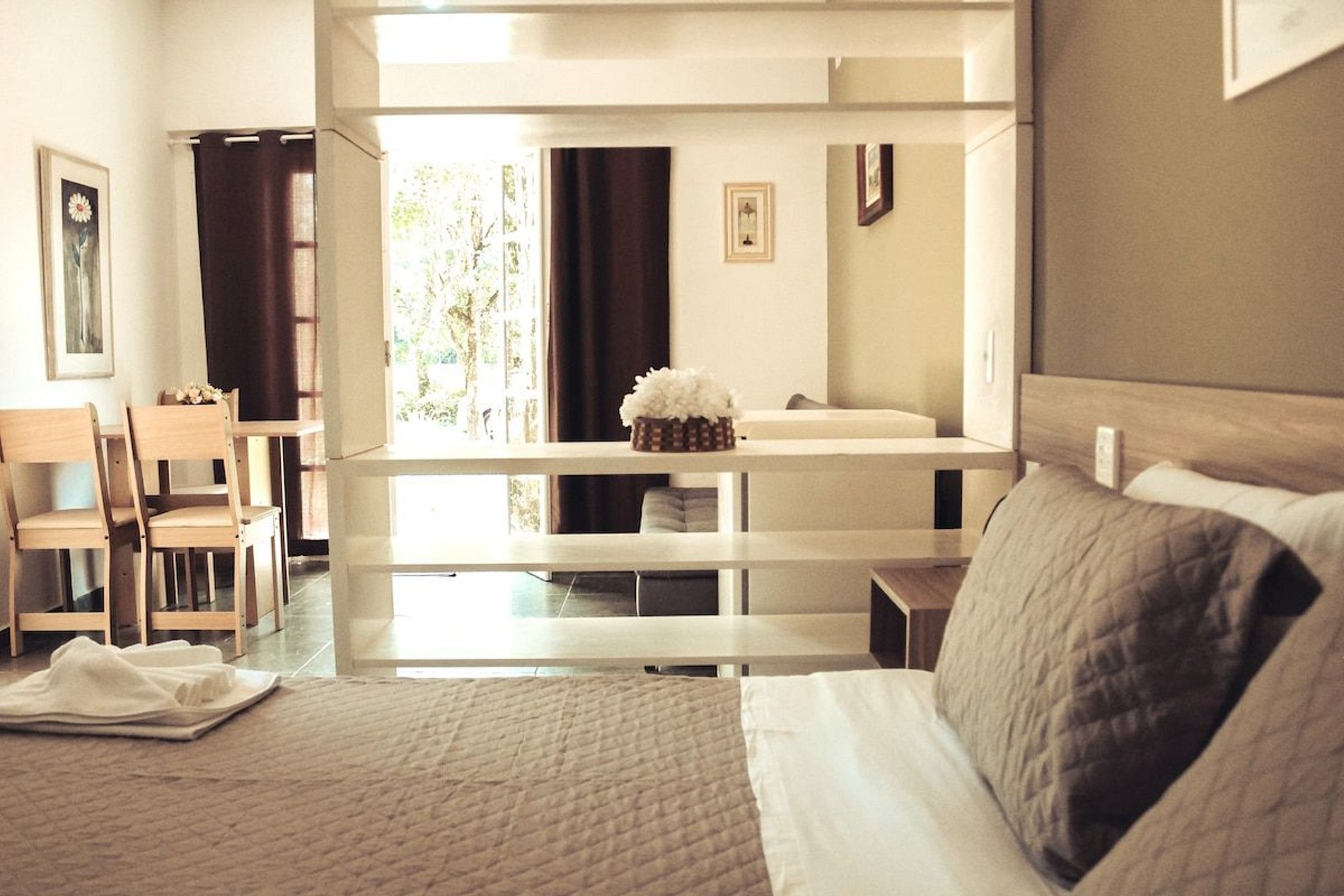 Excelente estrutura de hospedagem, com suítes confortáveis e bem equipadas, espaços para descanso e lazer, além de sala de Coworking com sinal estável de internet, tudo isso em meio ao verde exuberante da natureza.
