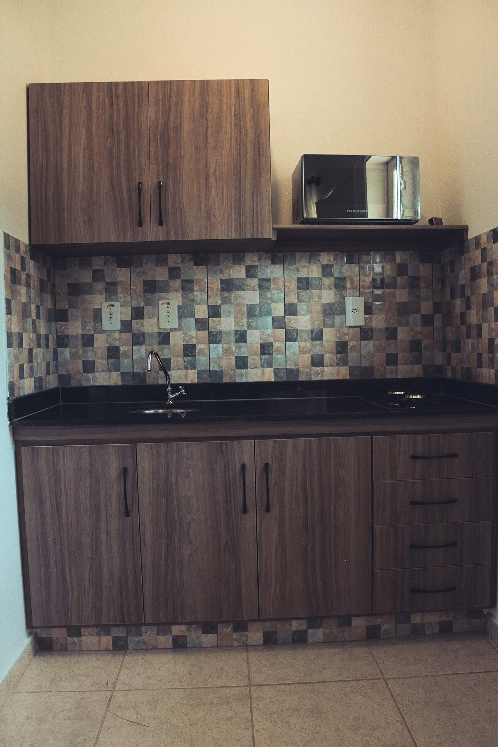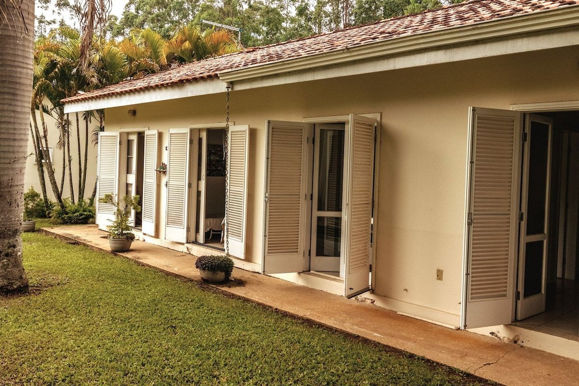Excelente estrutura de hospedagem, com suítes confortáveis e bem equipadas, espaços para descanso e lazer, além de sala de Coworking com sinal estável de internet, tudo isso em meio ao verde exuberante da natureza. Roupas de cama, banho e utensílios de cozinha disponíveis.