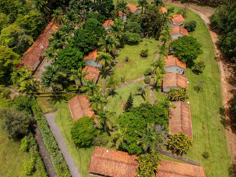 Excelente estrutura de hospedagem, com suítes confortáveis e bem equipadas, espaços para descanso e lazer, além de sala de Coworking com sinal estável de internet, tudo isso em meio ao verde exuberante da natureza.