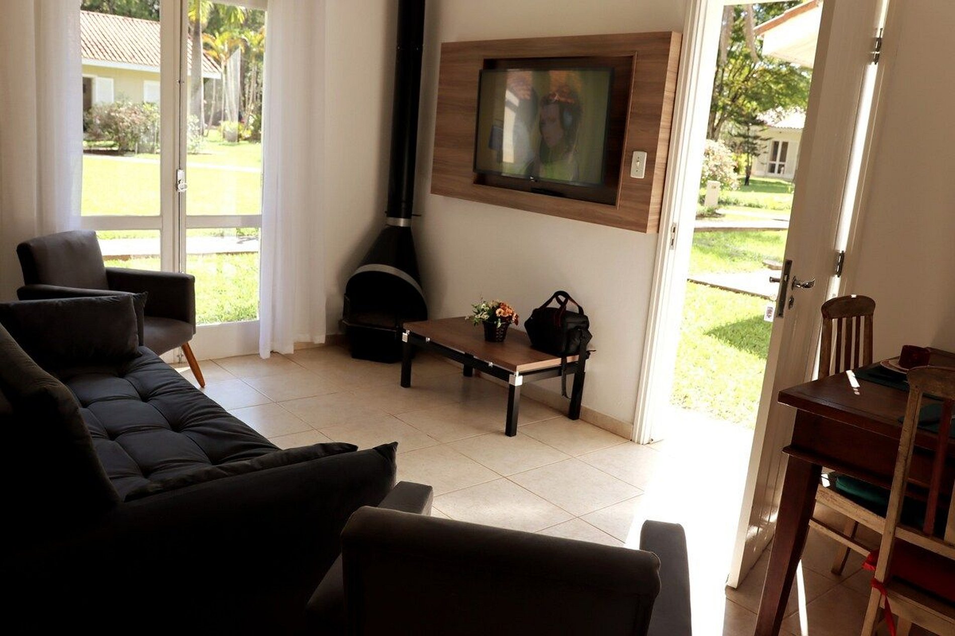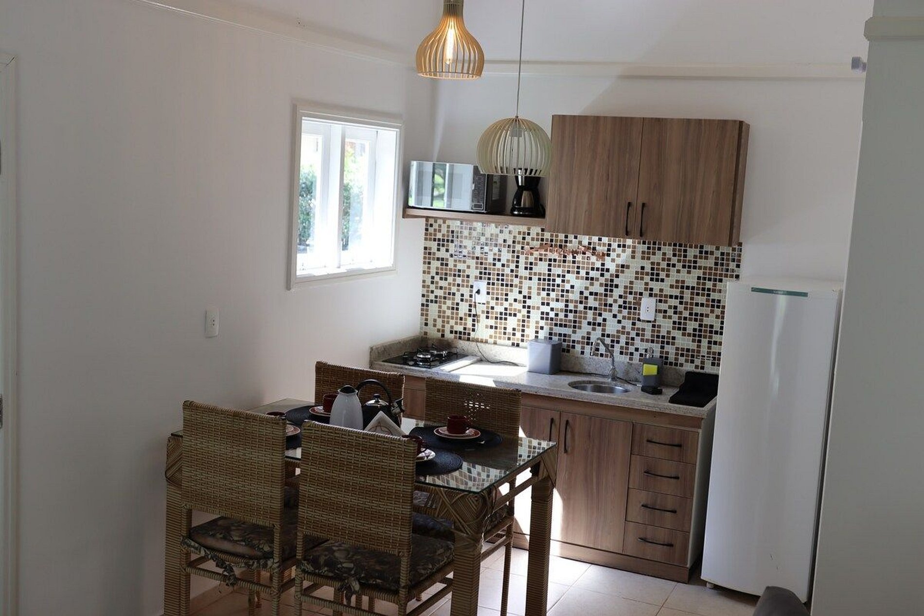Excelente estrutura de hospedagem, com suítes confortáveis e bem equipadas, espaços para descanso e lazer, além de sala de Coworking com sinal estável de internet, tudo isso em meio ao verde exuberante da natureza. Roupas de cama, banho e utensílios de cozinha disponíveis.