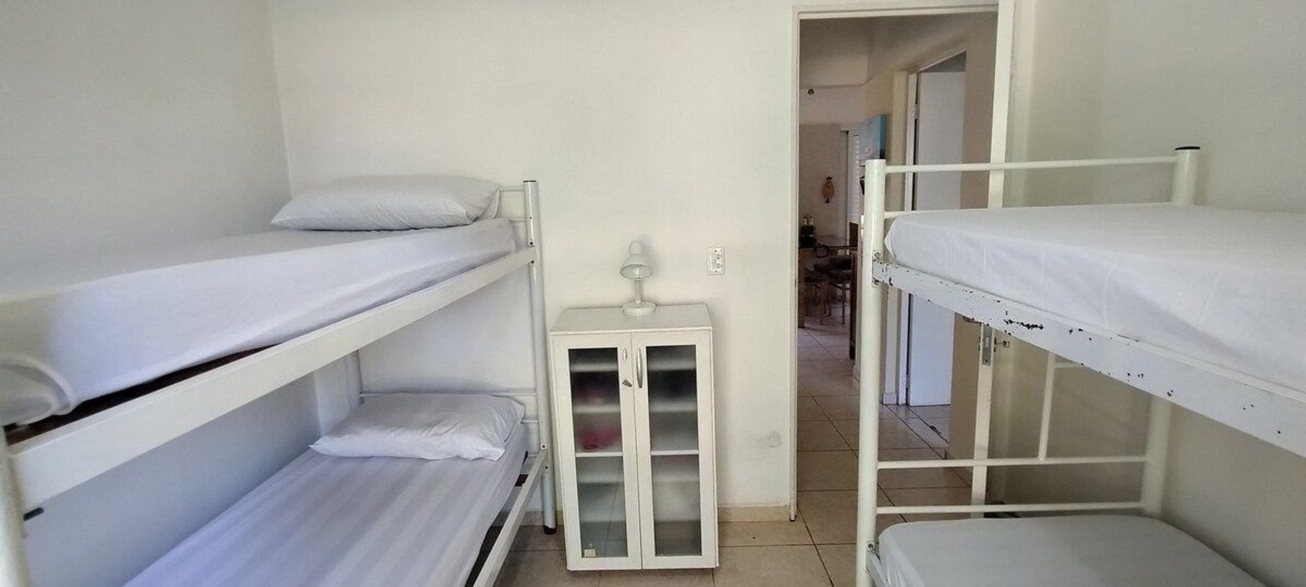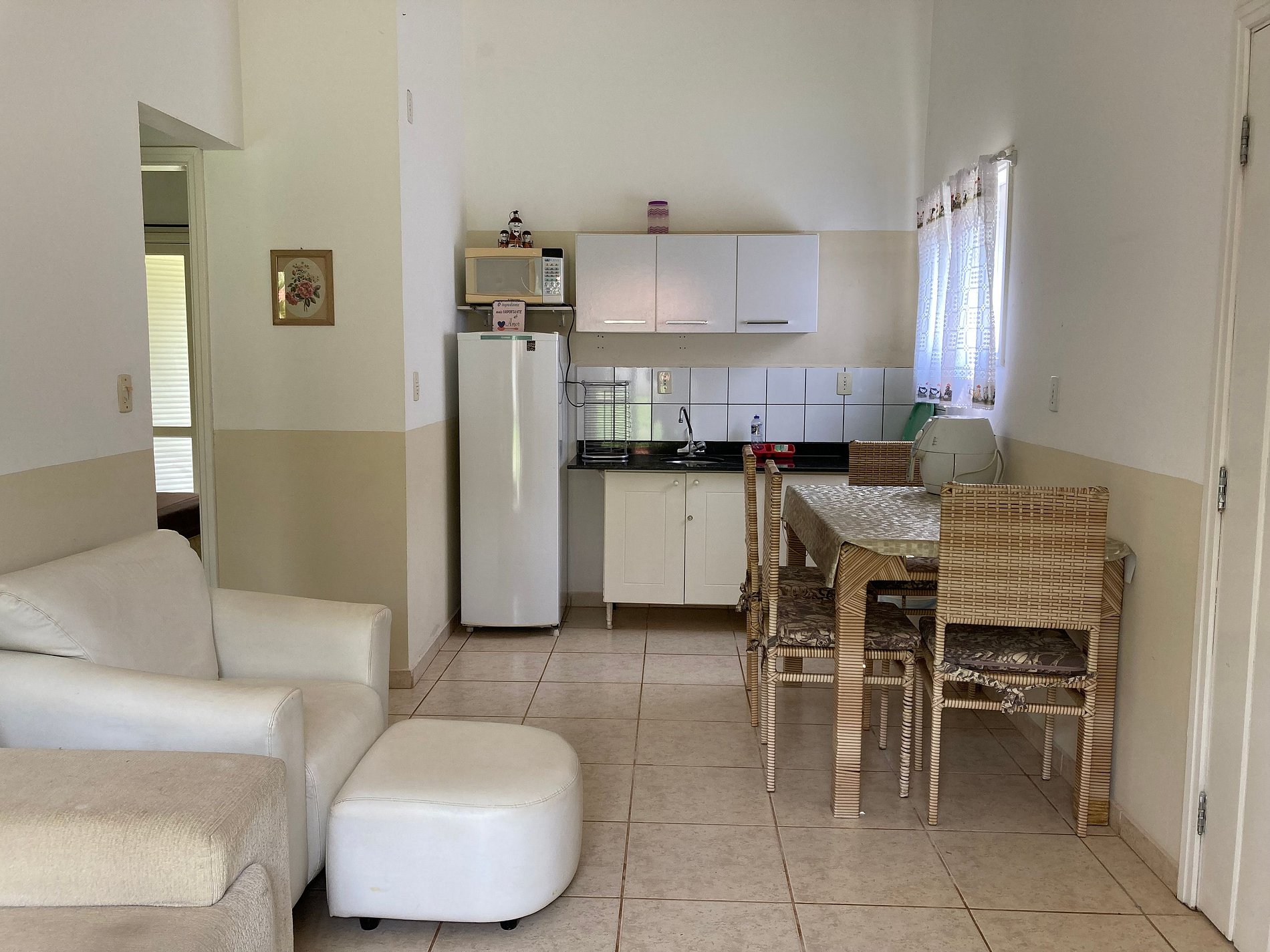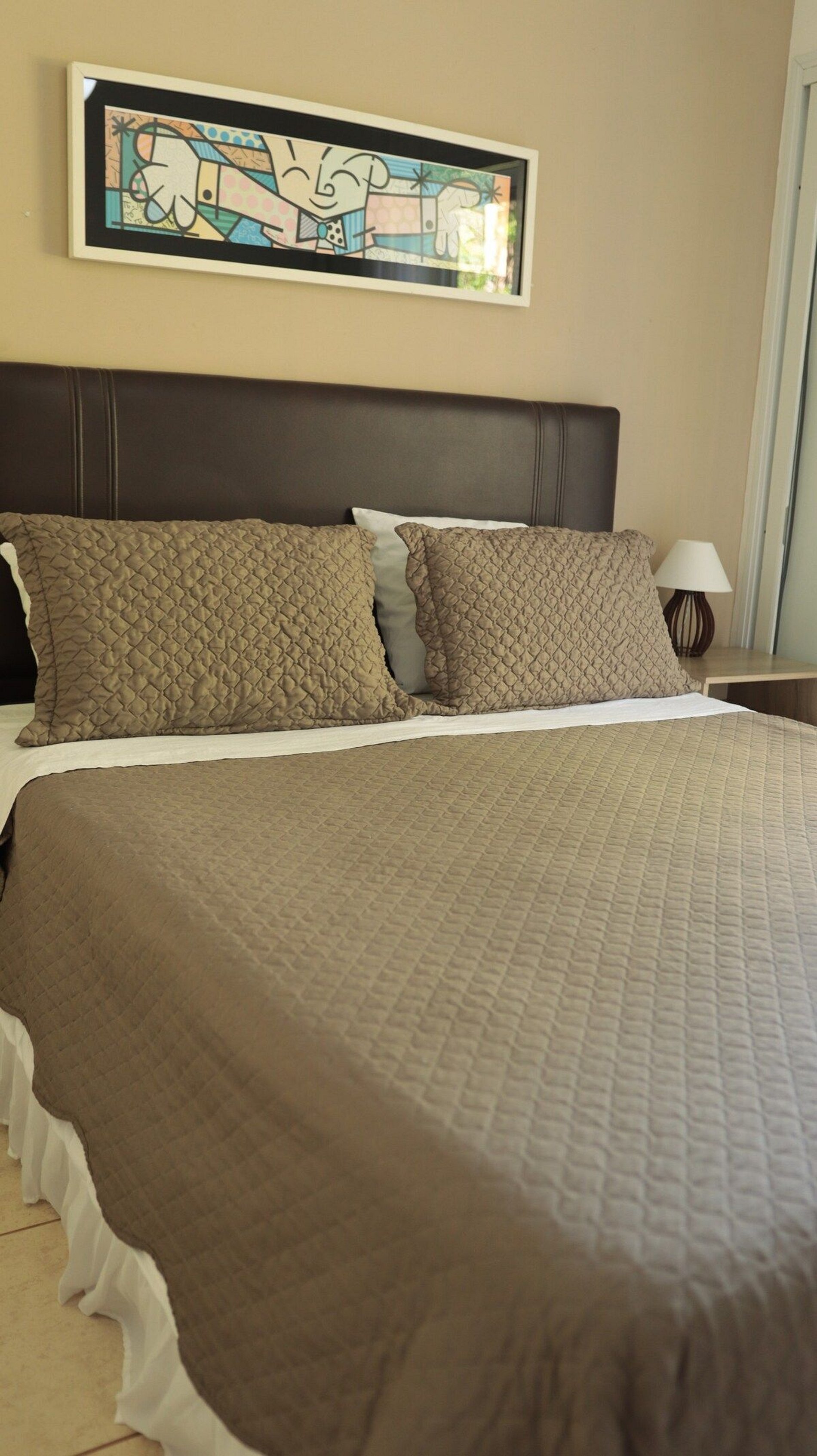Roupas de cama, banho e utensílios de cozinha disponíveis.